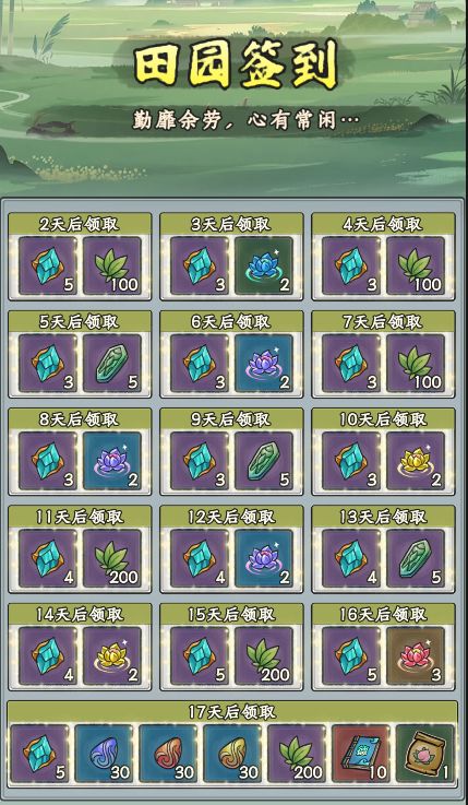 - [田园签到]:共计16天的签到活动,累计可获得 10本德经!