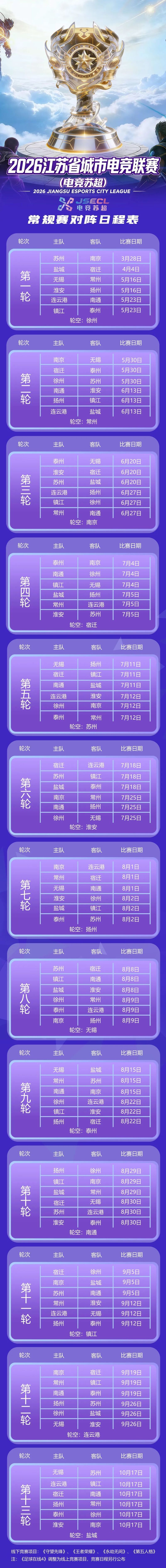 🏆 “电竞苏超”常规赛赛程发布,快来pick你的城市主场!
