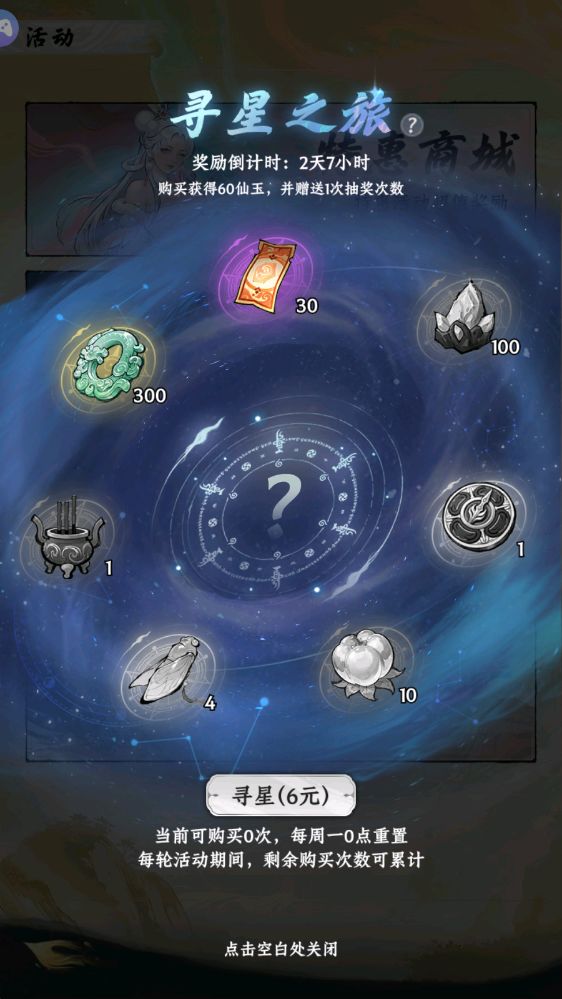 寻星之旅:付费抽奖,可出四品悟道香(稀有)。