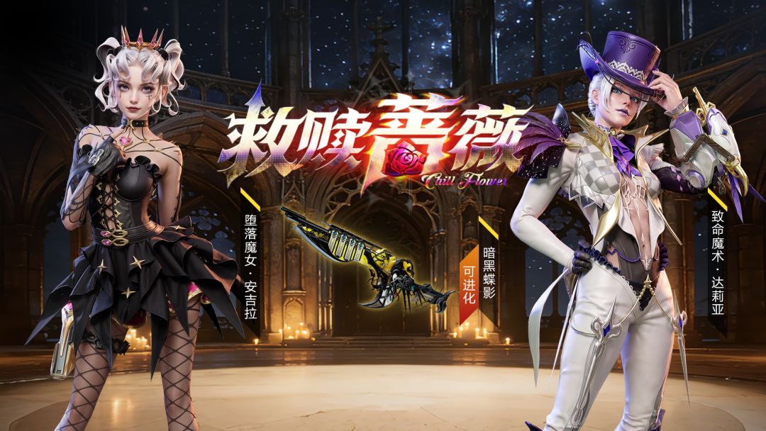 重点道具:安吉拉传说级皮肤【堕落魔女】、达莉亚传说级皮肤【致命魔术】、传说级可升级武器皮肤飞隼-【暗黑蝶影】。