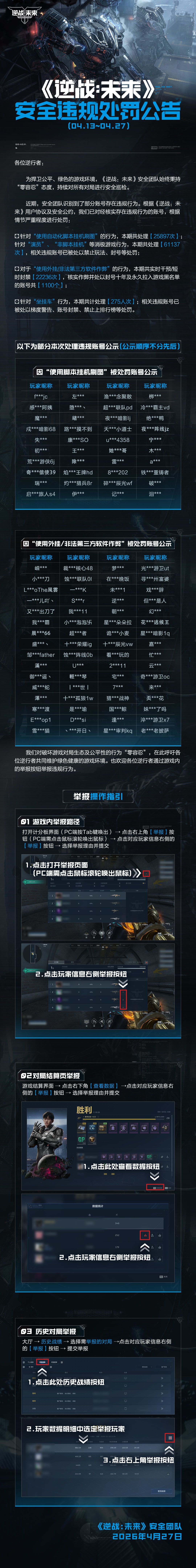 《逆战:未来》安全违规处罚公告(4.13-4.27)