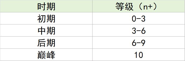 初期-中期-后期-巅峰各有九衰