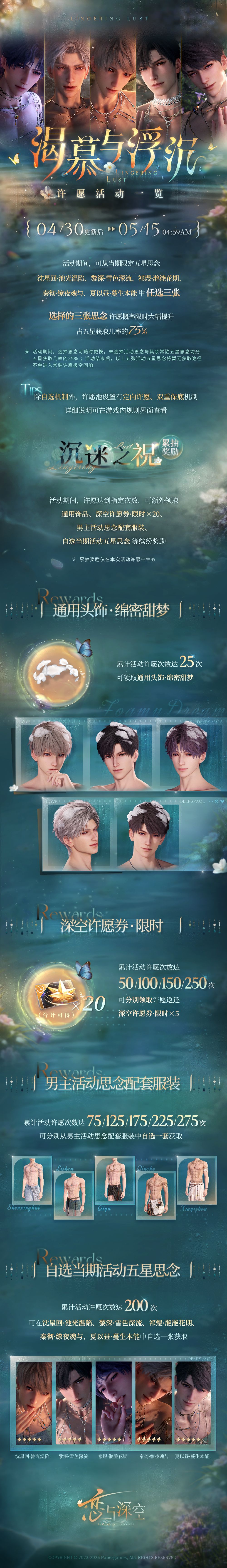 恋与深空五星思念限时UP许愿「渴慕与浮沉」即将开启
