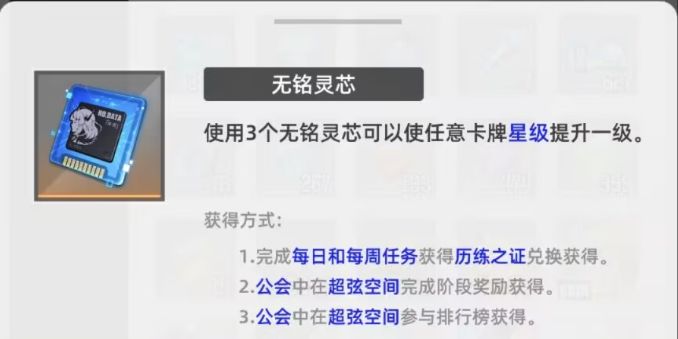 “灵芯”,即玩家口中的芯片(为方便起见,后文统称为芯片),作用是三片芯片可以作为通用升星材料来替代本体卡为卡牌升星。