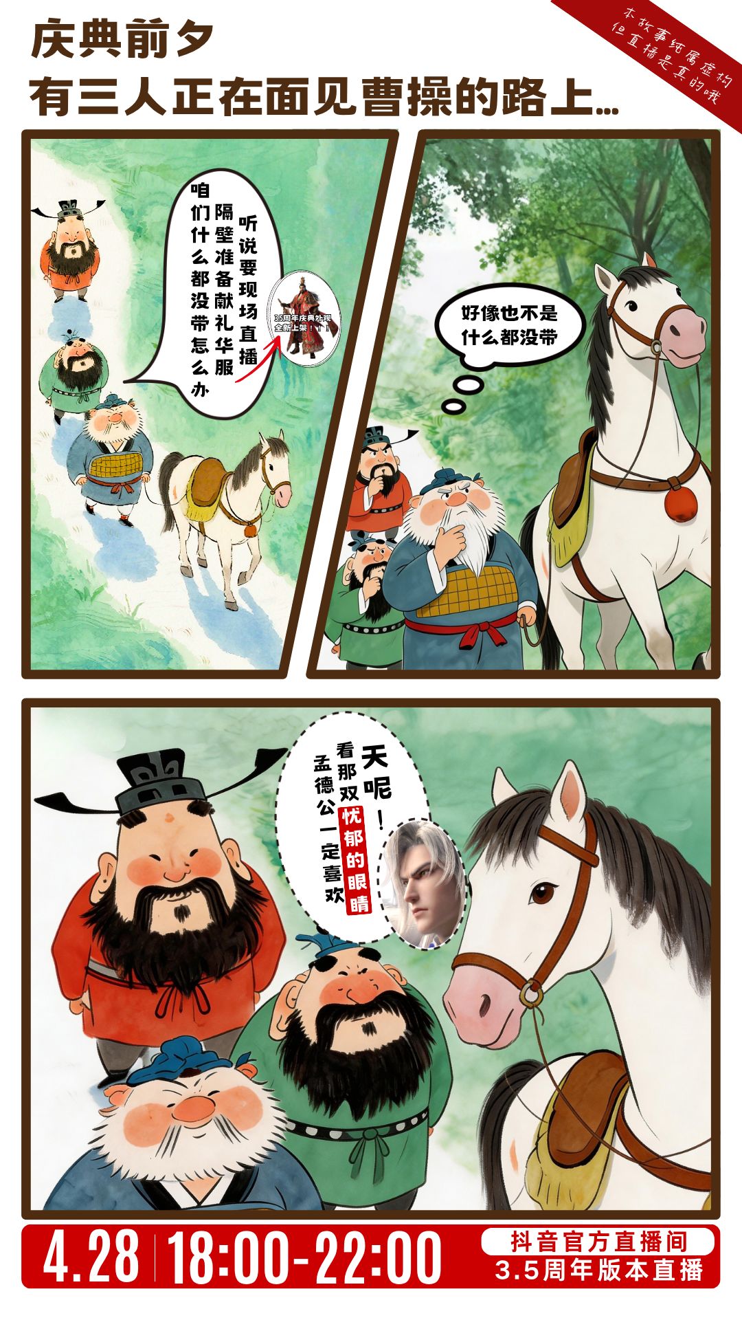3.5周年庆典直播火热开启!自古红蓝出CP——蓝装荀彧现场抽送,红装曹操外观首发!双月卡福利狂撒不停,神将帖限时超值必囤!点击下方链接,马上进入直播间抢福利↓
