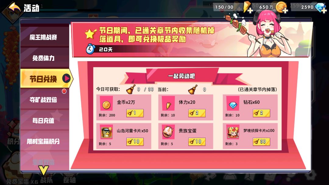 活动期间,在已通关章节内收集随机掉落的扫帚,兑换奖励(每日上限20个扫帚)