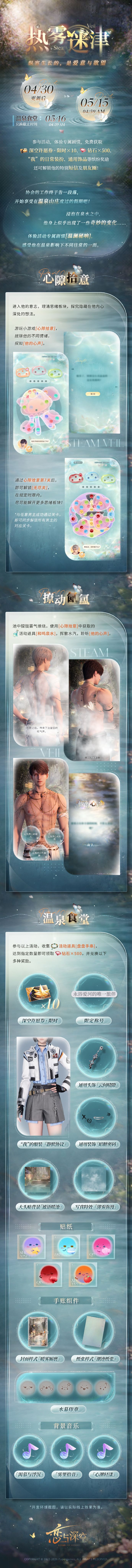 体验活动专属剧情,感受他在温泉影响下不同往常的一面。