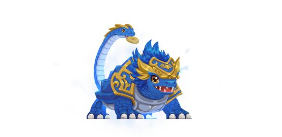 蓝身缀金色纹饰,龟蛇合体的造型萌趣十足。蛇首衔金,龟甲刻祥云纹样,既保留了玄武镇守北方、象征长寿稳重的文化内涵,又是传统神兽文化的可爱化演绎,还能为角色带来8%的庇护宠物属性加成!
