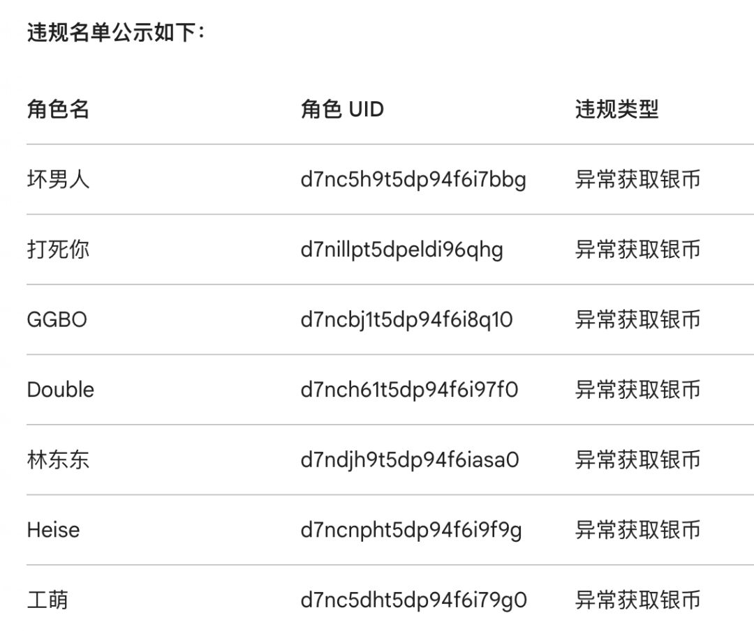 5. 【恶意刷银币】对恶意刷银币的账号做了封禁处理。