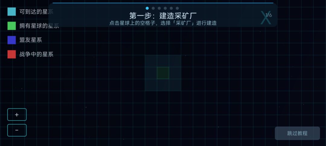 第一步 认识母星,建造第一座采矿厂 高亮指引 + 文字提示,屏蔽其他按钮
