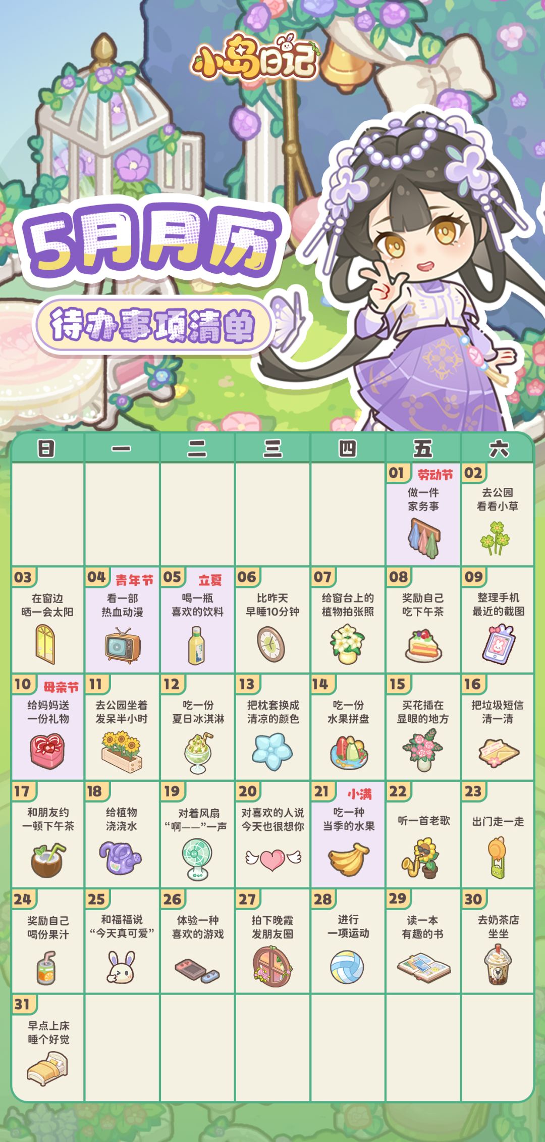 「月历壁纸」💜5月月历请收下!把日子过成初夏的诗~