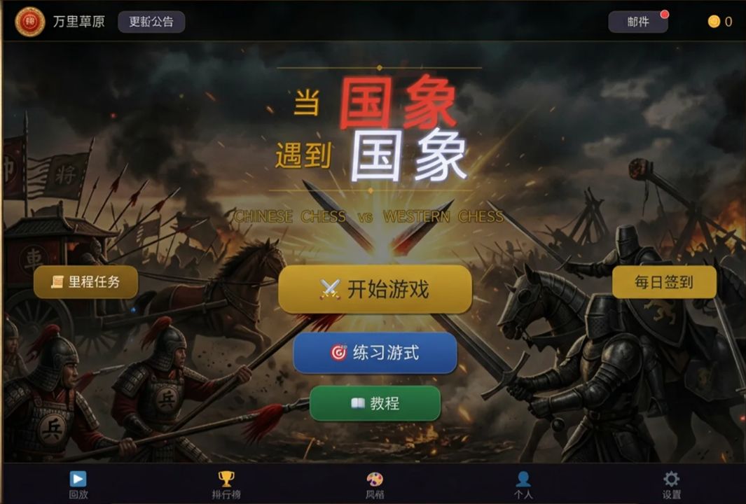 玩法介绍:当中国象棋遇到国际象棋,会擦出怎样的火花?《当国象遇到国象》就是这么一款类型的游戏,我尝试进行了部分平衡如把主动权交给中国象棋,以平衡国际象棋的普遍子力优势,并优化了一些逻辑,最终诞生了这款象棋对战类游戏。