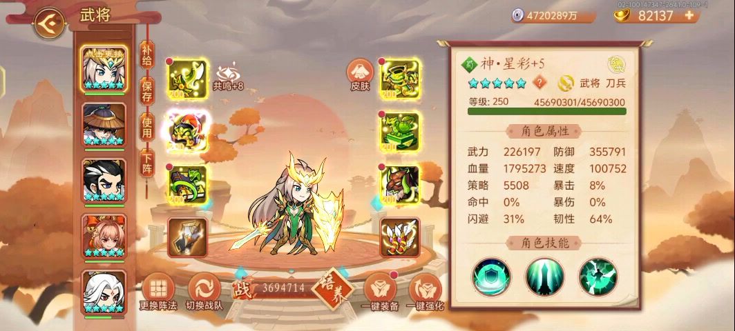女宿1-8,圣崆峒+7伏羲,单仙徐庶加其余重铸神。
