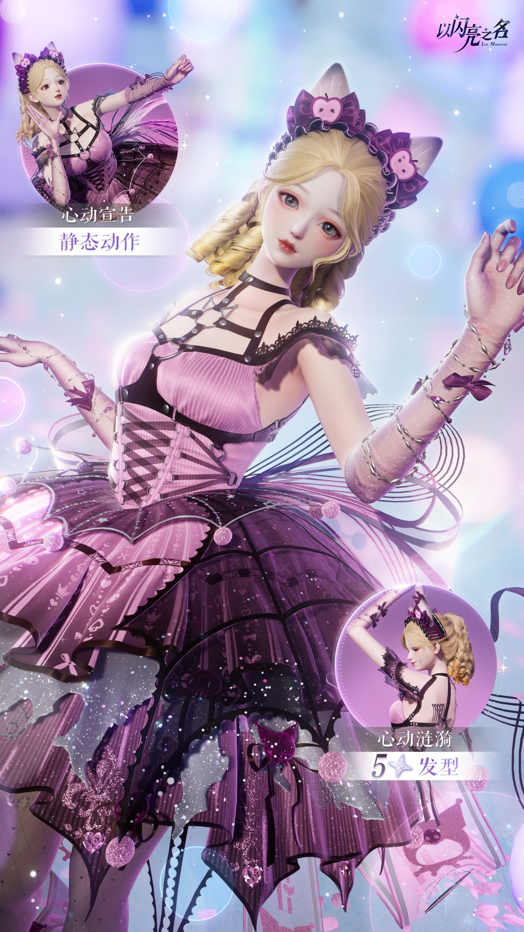 5月20日起,登录游戏参与游戏内“xin”动的邂逅签到活动,即可领取五星发型【心动涟漪】,静态拍照动作【心动宣告】。