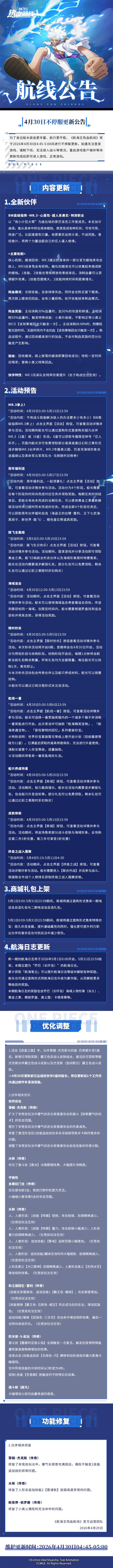 为了各位船长旅途更丰富、航行更平稳,《航海王热血航线》将于2026年4月30日4:45-5:00间进行不停服更新,如遇无法登录游戏、强制下线、无法进入战斗等情况,重启游戏客户端并等待更新完成后即可进入游戏、正常游玩。
