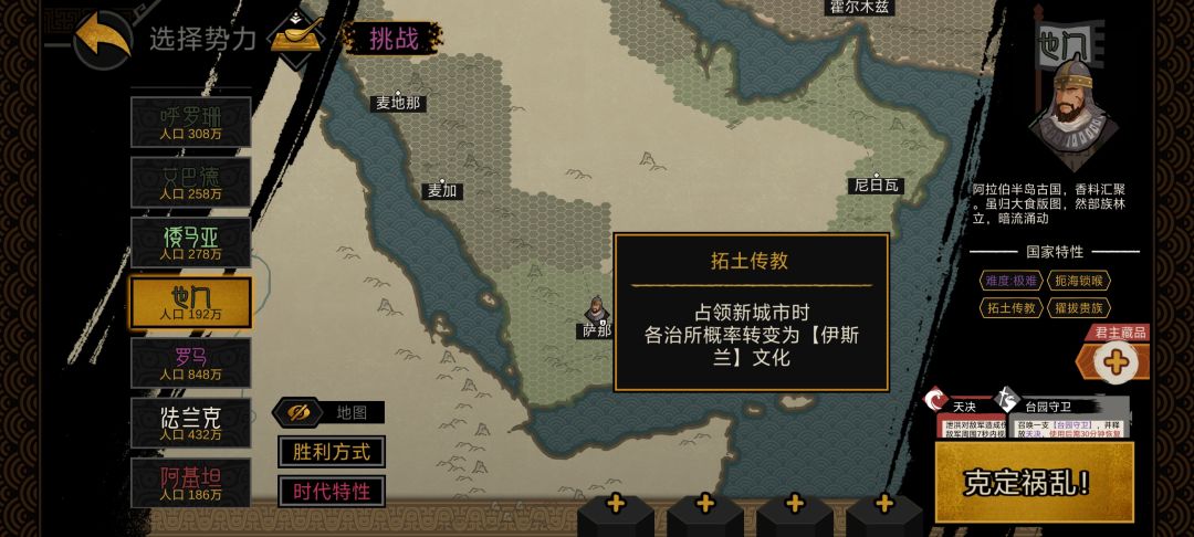 首先刚需李靖,剩下带些加进度的比如冼夫人,王昌龄,势力选也门,他是我们唯一能选的伊斯兰主流文化的势力。