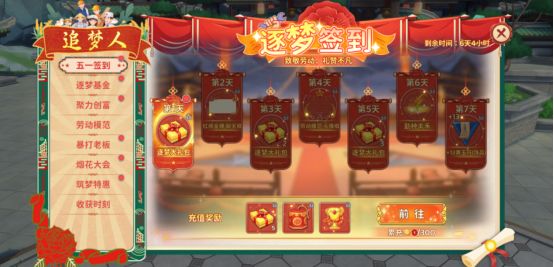 五一佳节,登录即享签到好礼,累计打卡赢取“筑梦大礼包”!充值元宝还可解锁额外惊喜奖励,福利层层加码!
