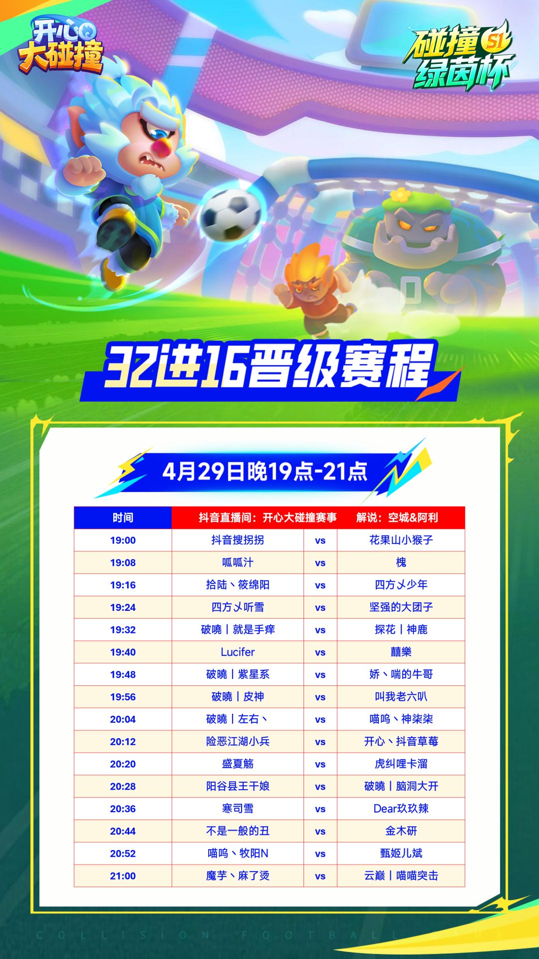 🚀今晚19:00,锁定官方直播间! 开心碰撞,决胜绿茵!