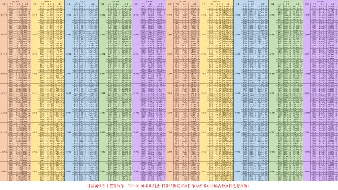 本次神墟全古神属性,参考神塔塔、荒域系列、儒道书舍等现有副本BOSS攻血比例进行推算,数据具备合理参考性。