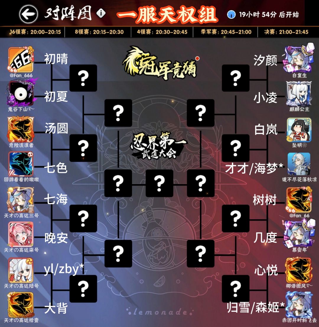第二十五届(一服)天权组武道会淘汰赛名单