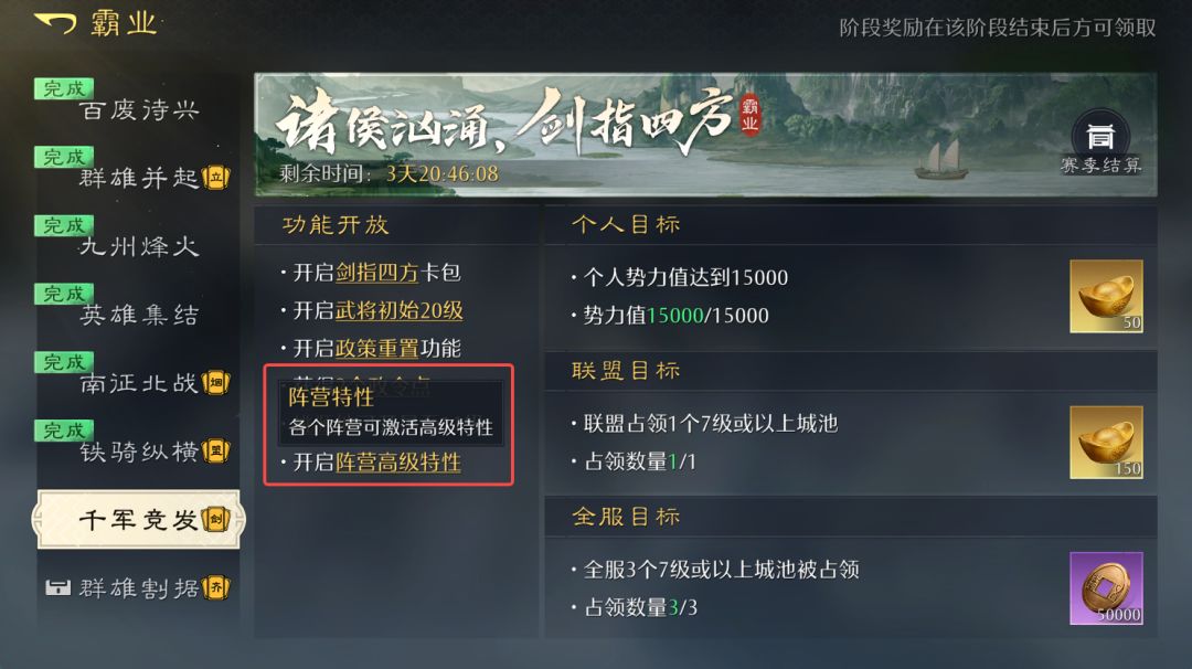 随着S3赛季霸业进度推进,六大阵营的高级特性已经解锁。