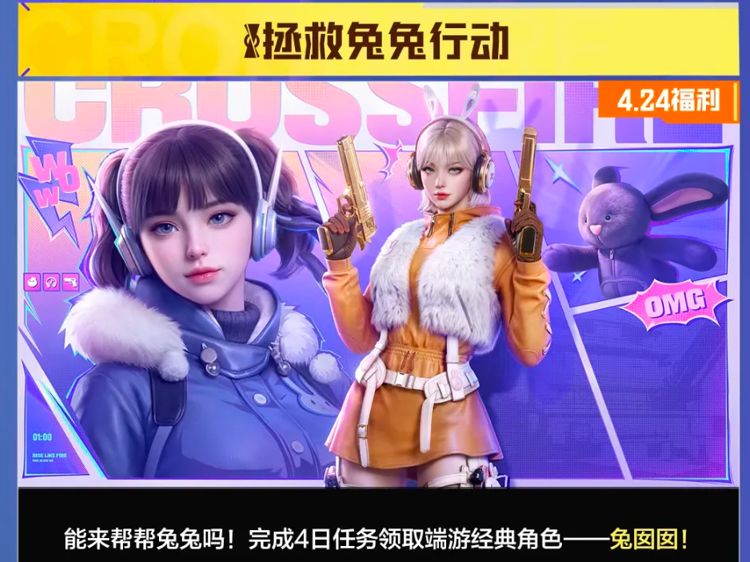 哈喽,小伙伴们大家好,全新福利角色兔囡囡即将与大家见面,只需CFer参与拯救兔兔活动,并完成相应的任务,5月1日即可解锁全新福利角色——兔囡囡,接下来为大家介绍下此次活动都有哪些福利道具。