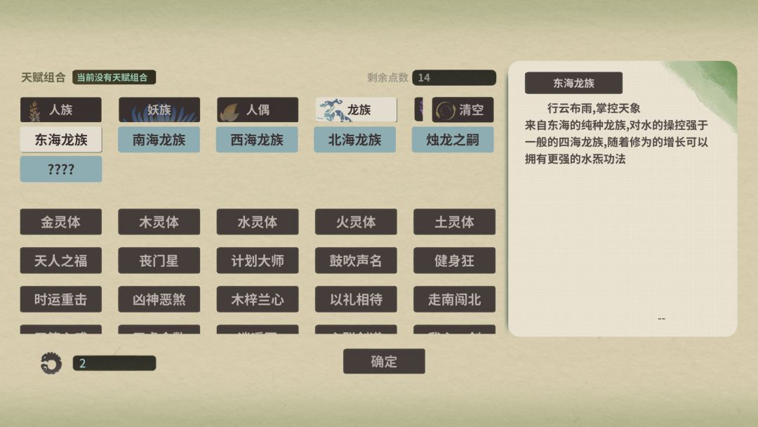尸族:可以看到天赋选择界面出现了尸族的UI预设,并且本次版本更新增加了尸毒机制,还可以通过功法变为尸族,种种一切都说明:尸族来的日子进了......