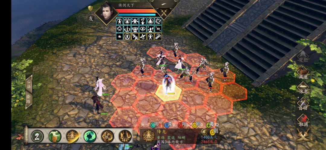 还是降龙,如图,不用其他招式时消耗700真气,用了一个变成1400,用了两个变成2800,而威力没有任何变化,这是怎么回事?