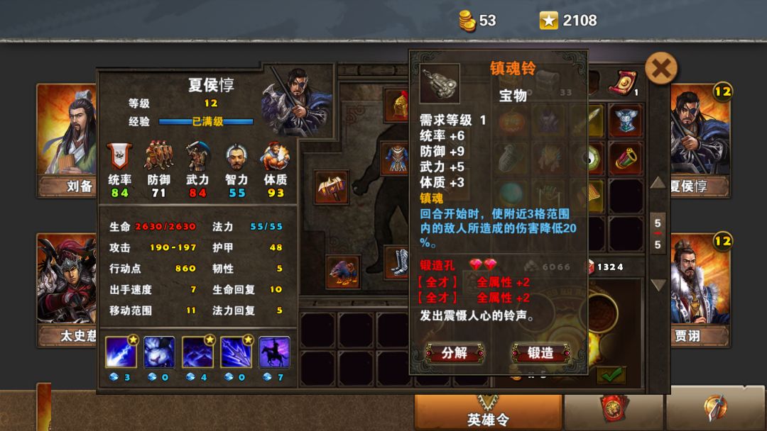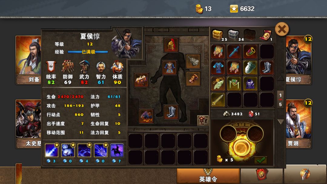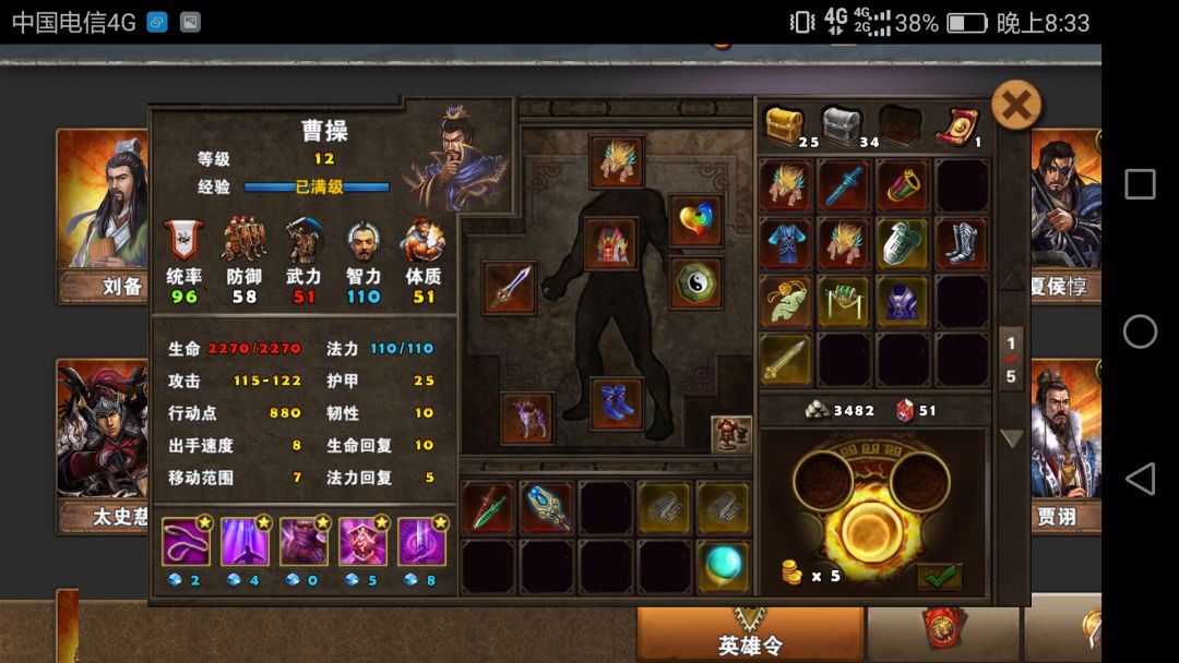 入洞打赵云是一个难点,不给钱打到后面夏侯没蓝,最后防守黑熊践踏碎金清兵,曹操雷仗蹭伤害加血这样过的,也可以刷个战场的回蓝道具。碎金加黑熊,后动跑到怪中间,第二回合让镇魂铃发挥减伤效果,最好传送一下加点甲。赵云没用终极技能没平砍的话还是抗的住,两次反击给小兵可以吸的回来,太早反击反而回血溢出了。下面是夏侯过赵云的装备,曹操的跟狼一样出雷仗。夏侯装备的橙装的喋血护腕和镇魂铃是好东西。