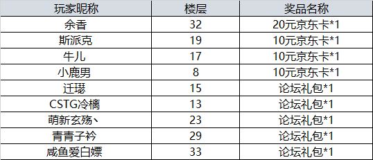 亲爱滴各位小伙伴,本次活动获奖名单如下,恭喜中奖的玩家~