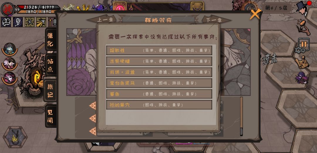 需要在一次探索中没有达成过一下所有事件!