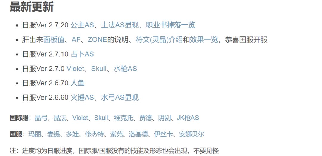 更新也会在这个页面最上面提醒,并附带国服/国际服最新人物的链接。