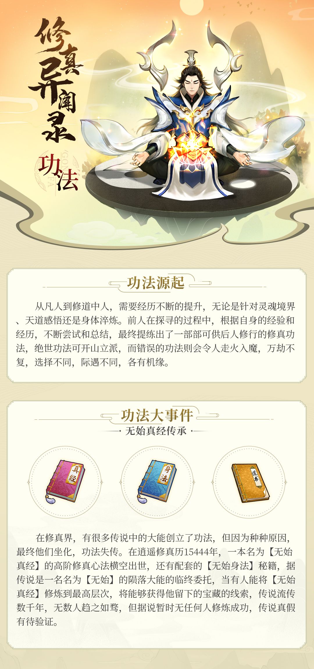 而这周我们要讲的就是修真世界中存在的功法,在逍遥大世界中,功法氛围三六九等,从最基本的入门功法,到高深莫测的极品功法,各有获得的缘法,而功法的诞生,也自有其因果: