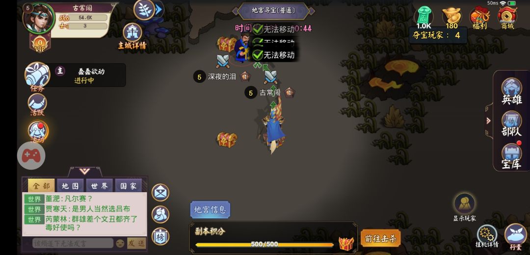 地宫寻宝,我也在打,然后头目被击杀了,我的战斗强行终止了,在原地不能动,要等差不多两分钟?