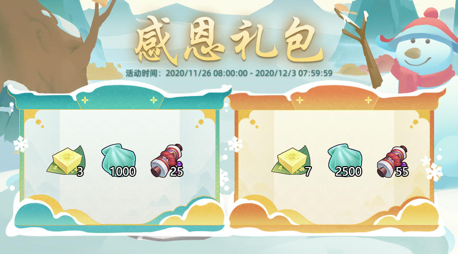 本次冬日特别活动,为大人们准备了2个档位的感恩礼包。