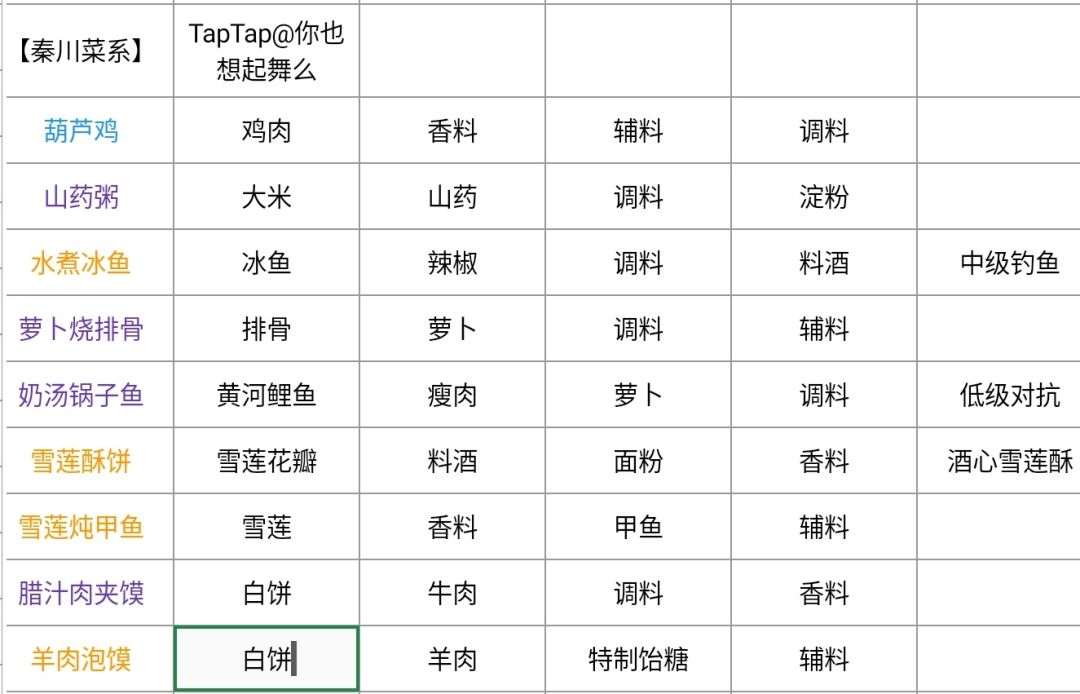 【你也想起舞么】食谱最全图表+增益Buff(纯图)