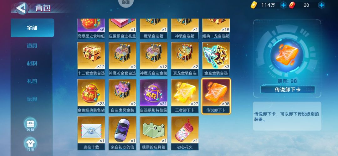 希望能出个卸下卡合成的,大概3--4个传说卸下卡合成1个王者卸下卡就行了😁