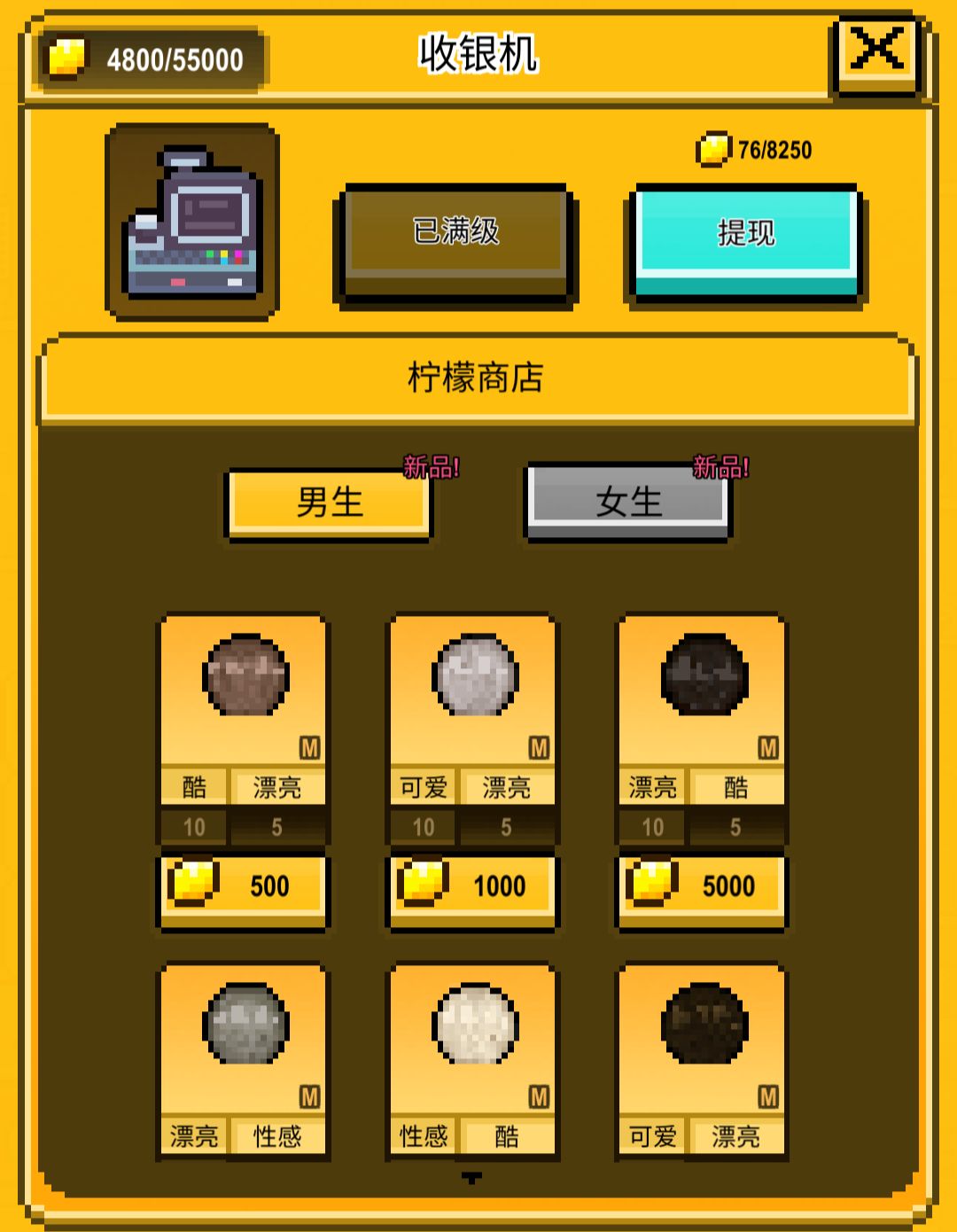使用刚刚从收银机新鲜出炉的柠檬币来兑换柠檬商店才有的一些限定的物品服装吧~