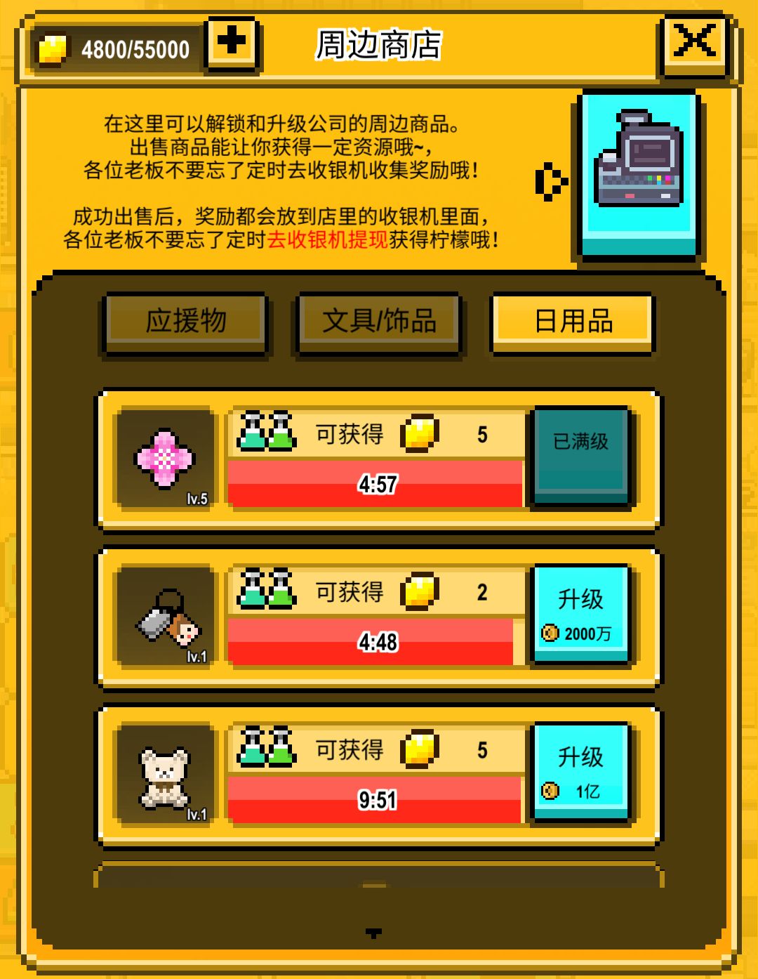 售卖周边商店里面的货品就可以让你获得大量的柠檬币哦!看,柠檬在闪闪发光诶!
