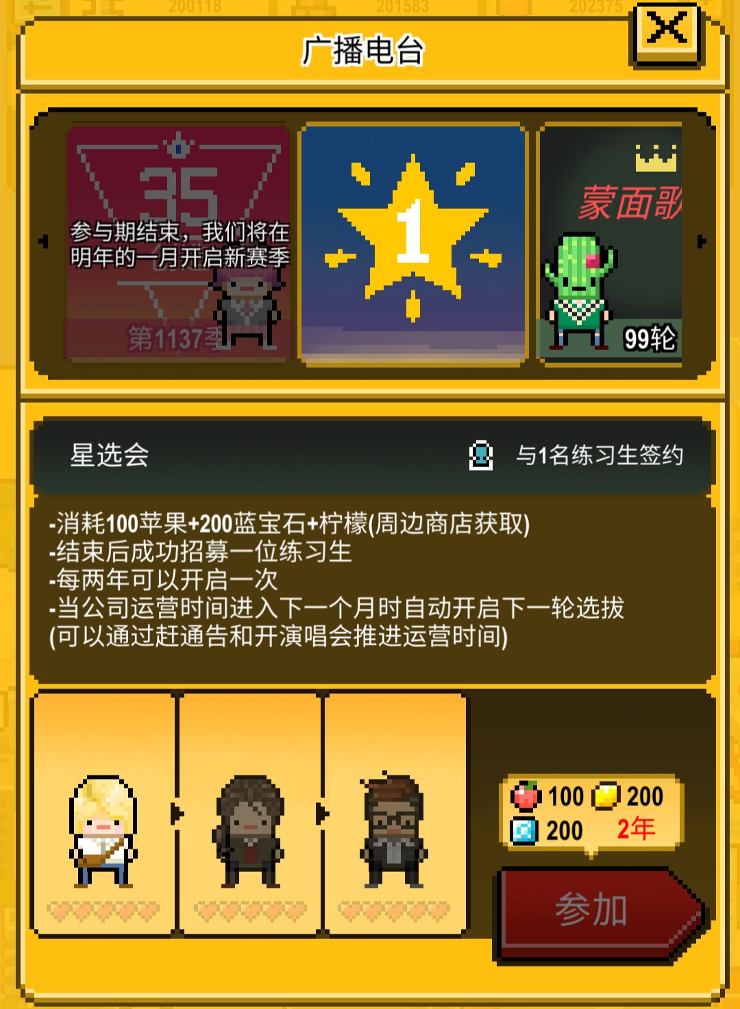 还不赶快去看看有哪一些优秀的练习生想要加入你的公司吧!