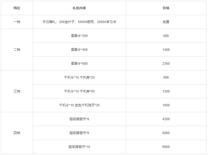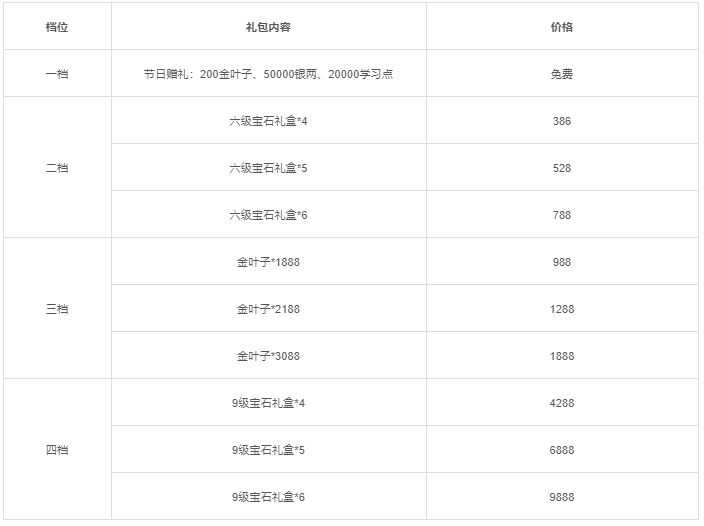活动一:活动期间将限时上架冬日礼包,礼包内容如下: