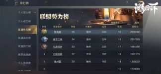 扬州联盟【一统天下】开服就霸占联盟势力榜。排在第二位的是益州联盟【天上人间】,在开区时便进驻于此。接下来就是幽州【云深不知处】,和并州【南征北战】分别位于3~4位。