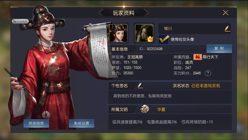 个人也希望玩这游戏的人能多点,毕竟SLG类型的游戏人多起来才热闹。至于我是谁?图中有ID,各位一定要记得来游戏中揍我。