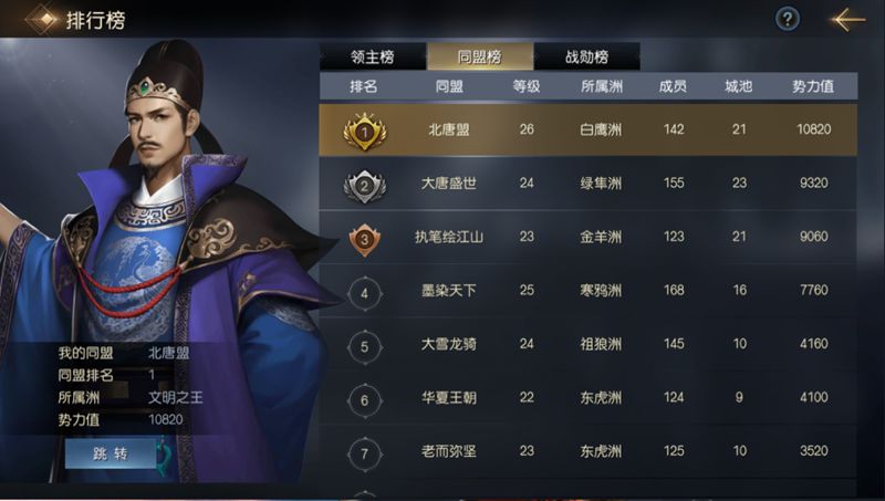 判断一个盟强不强,不是取决于在本洲频道的口号喊得有多响,而是看联盟等级升的快不快,升的越快说明活人越多。至于强不强,就看打城频率与效率怎么样!毕竟到了后期打架都是集体行动,如果同盟成员都没有参加集体活动的积极性,成员再多也是白搭。