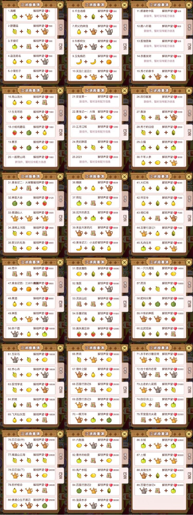 【攻略】官方89个信件配方