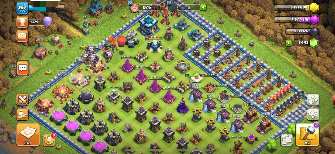 我5农按这个顺序兵营升级完的时候王就快满了,然后升级大本继续这个顺序升级,只有很少的时间还有联赛不躺王的时候有工人升级防御建筑。