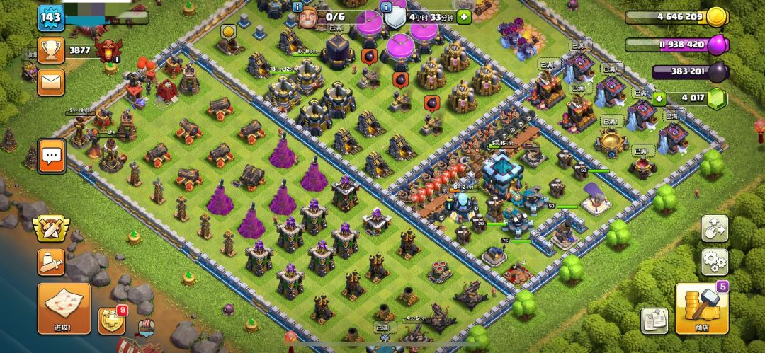 9本:我是狗球打鱼的,因为后面一直会用到气球,而且9本开始就要打部落战了狗球没女王打对号也能3星,联赛币13本之前尽量别用,王要是半夜醒的可以用一个工人药,最后一个兵营升级了就可以升大本(这里最好等个18礼包)