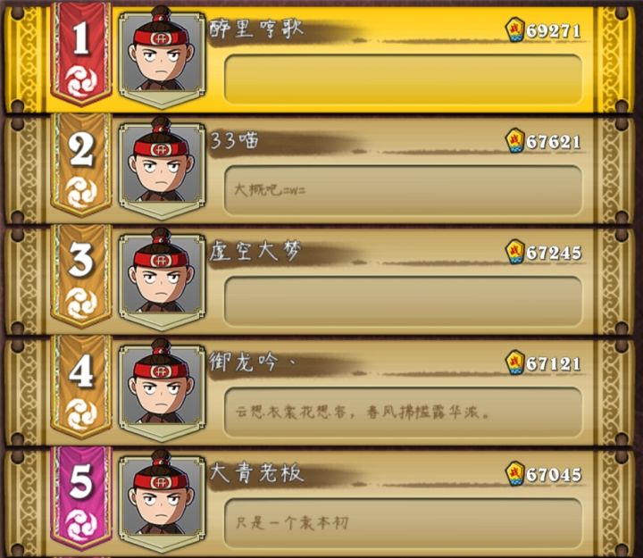 没有上榜的主公不要灰心,再接再厉,期待下一次与你相见✔ 排名奖励已通过邮件的形式发放给各位小主啦
