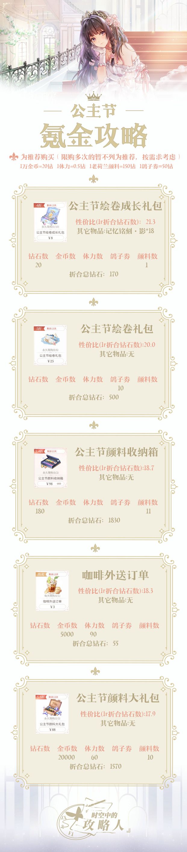 锵锵!攻略人就此为各位公主奉上节日氪金攻略,希望各位公主能快乐节日,体验最佳的氪金之旅✨