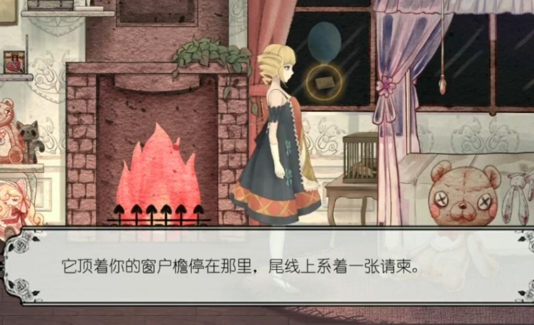 1、获得请柬:点击开始游戏之后是一段剧情,剧情结束以后点击窗外有蓝色的气球的这个窗子,获得请柬。1X1